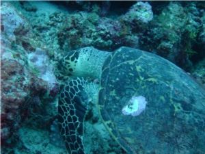 近づくわれわれを全く気にせずお食事中のタイマイ